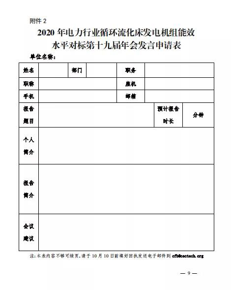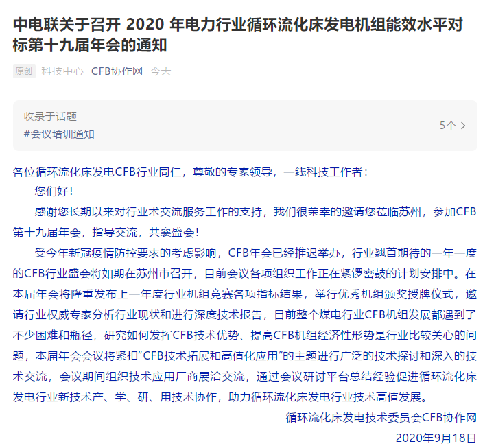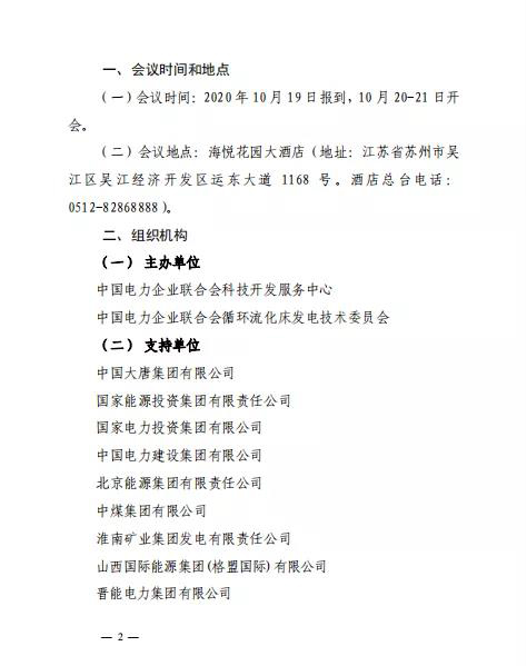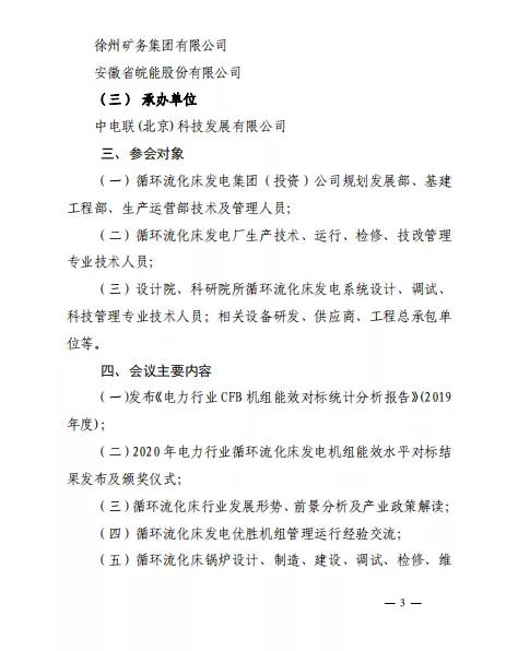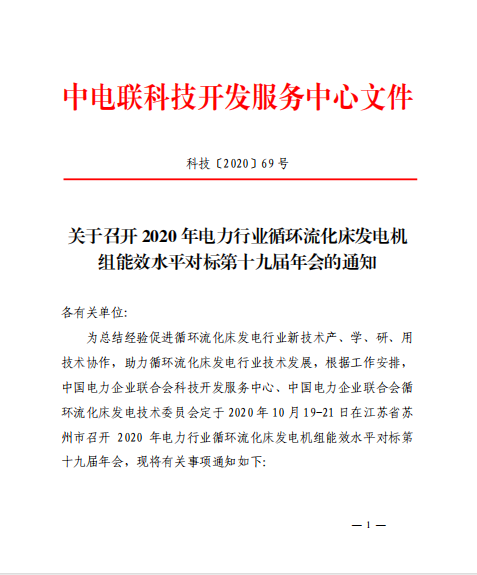 中电联关于召开 2020 年电力行业循环流化床发电机组能效水平对标第十九届年会的通知(转)